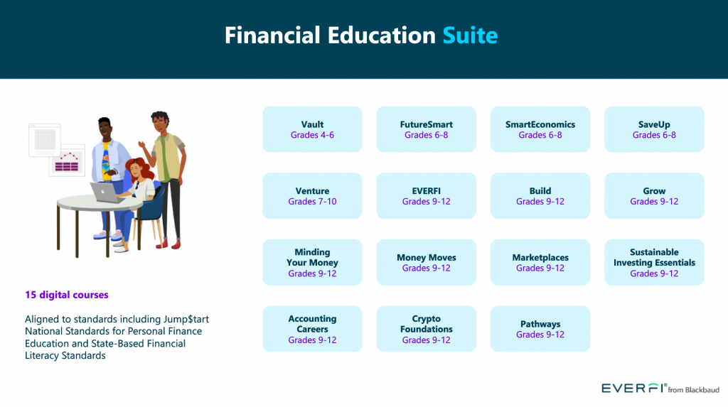 o EVERFI: Financial Literacy—Encourage students to explore one of the seven lessons—covering everything from banking, employment, budgeting, consumer skills, financing higher education, and more—in our financial education 101-course